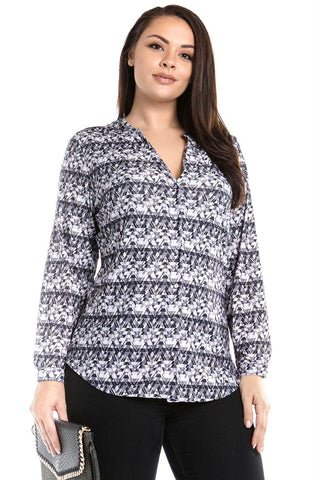 This plus size button down top features a 3D zig zag print and can be accessorized easily