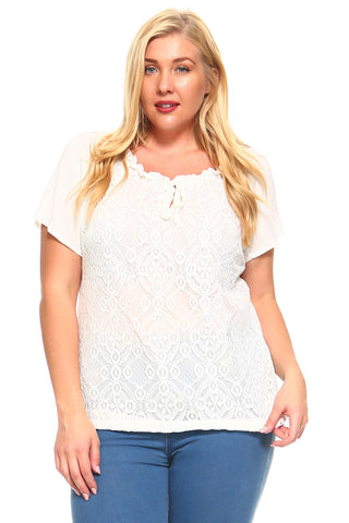 Women's Plus Size Lace Front Tie Top